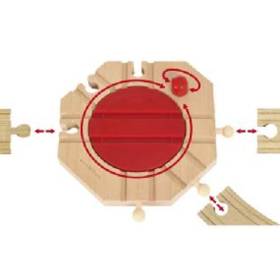 Drive on, turn the button and send your train off in a completely different direction. This turntable will not work however with long engines or trains. Age 3 years +