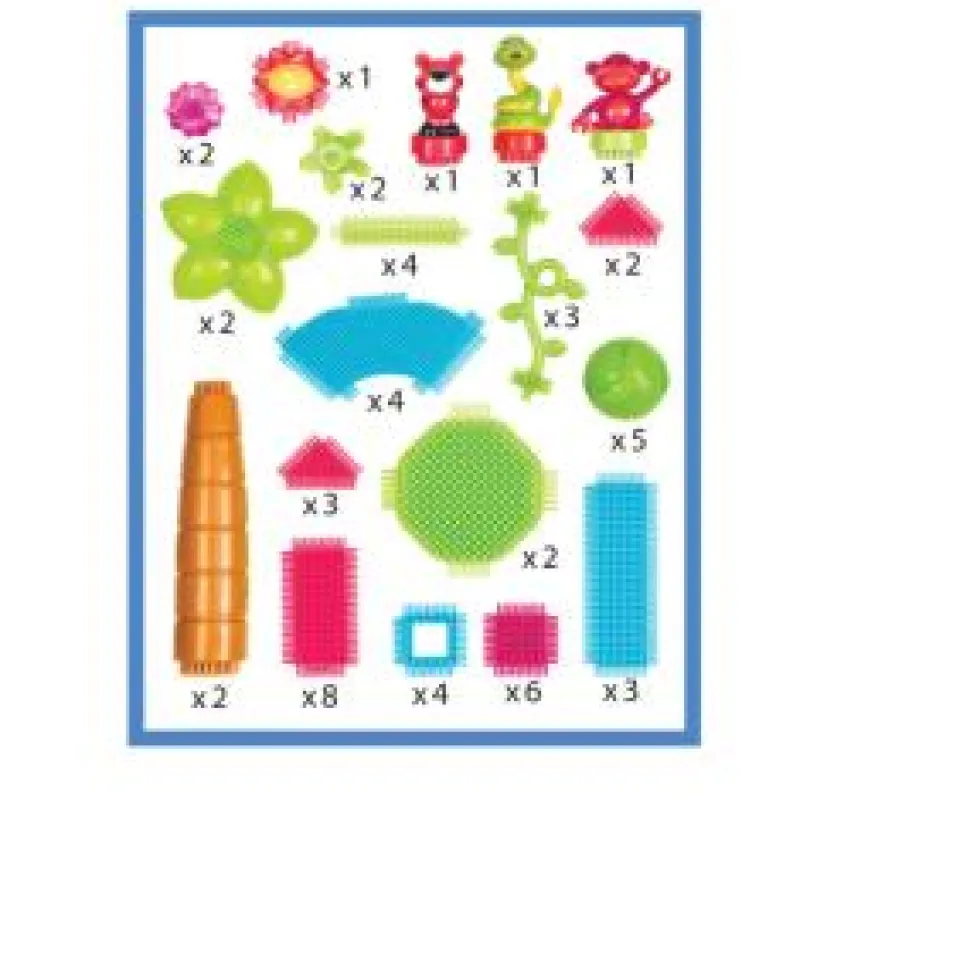 Bristle Blocks are fun, easy to join together and you can use your imagination to create your own design or reproduce the examples on the box. The different sizes and special pieces are designed to stimulate creativity. This set comes with 58 pieces in a reusable storage box.