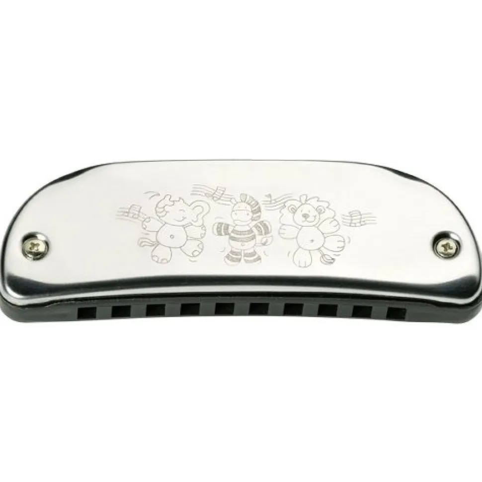 A well designed easy to hold and play mouth organ, which will give the player endless hours of fun, discovering the 10 different tones and creating tunes. Its metal with an engraving of dancing animals on the top. Age 3+
