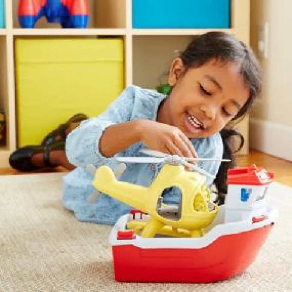 About the Green Toys Rescue Boat and Helicopter Toy with Mini Figures