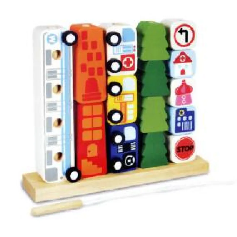 A great multi activity toy, learn sorting and stacking, counting numbers 1- 5, early fractions, threading and lacing or just play with the pieces individually. You can make a street scene with buildings, trees and vehicles then do the learning bit as you put them away or just have fun learning whilst you play. Age 12 months +