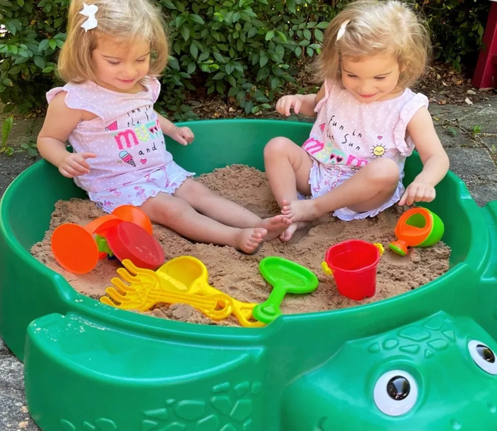 This friendly faced Little Tikes Turtle Sandbox Sandpit features a green turtle shape sandbox with a friendly turtle face. Includes a removable sand pit lid featuring lots of turtle shell detail throughout the lid and covers the entire area of the sandbox and helps keep the sand clean and dry when the sandbox is not in use. Featuring a large play area which will provide lots of fun and creative sand and water play for the little ones. Friends can come and watch all the fun sitting on the turtle flippers, which are perfect seats for the little ones.