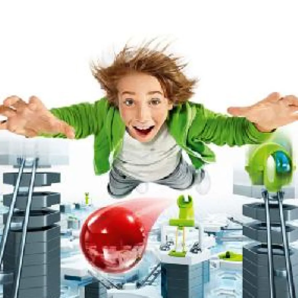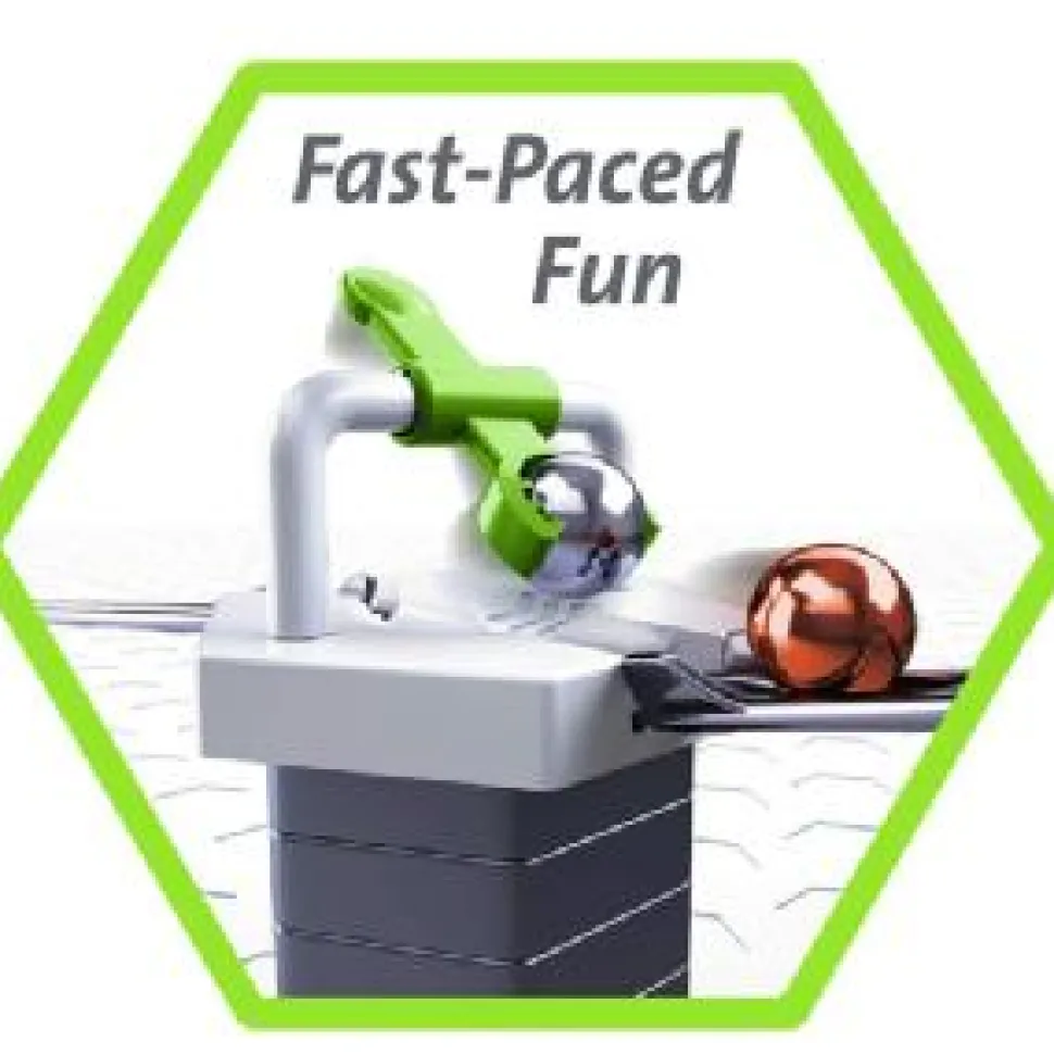 Add extra momentum with the hammer to get your ball traveling further and faster. Add this to the starter set to help get your ball to the finish. 1x Set of Instructions, 1x Hammer Base, 1x Long Rail, 2x Medium Rails, 3x Short Rails Age 8+