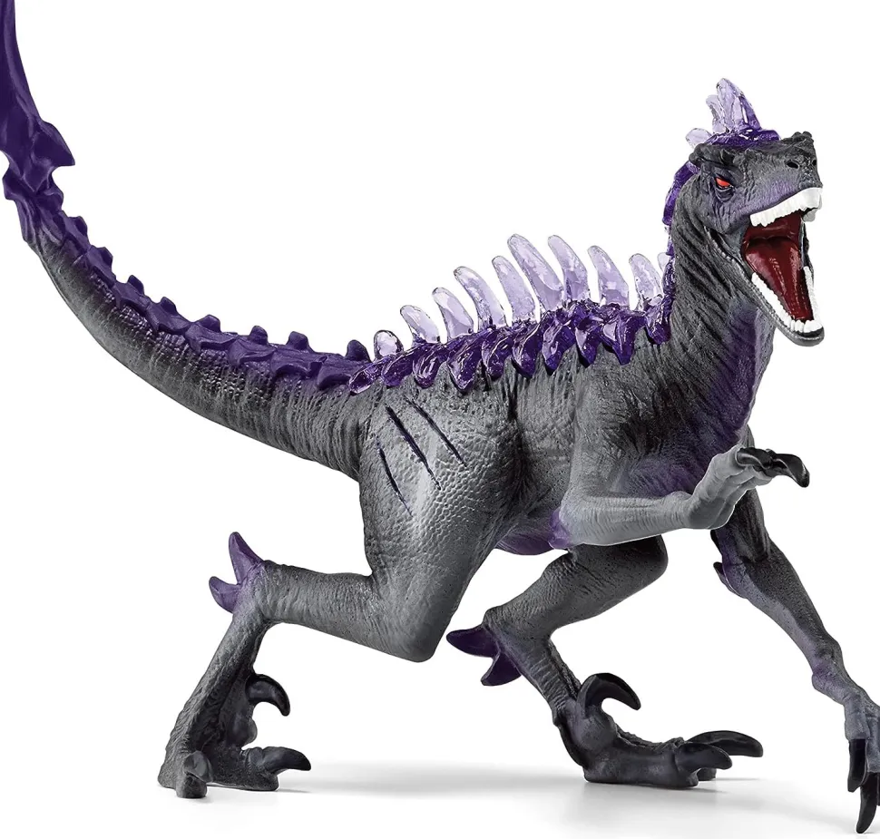 Word of the Shadow Raptor’s reputation has gotten around fast, as it is the most fearsome prehistoric monster in Eldrador. After all, who wants to be crushed by its powerful jaw? It gives its enemies an evil nasty red-eyed stare. The sharp spikes on its back are quite dangerous and its transparent spine shimmers an eerie purple. Let’s get out of here!