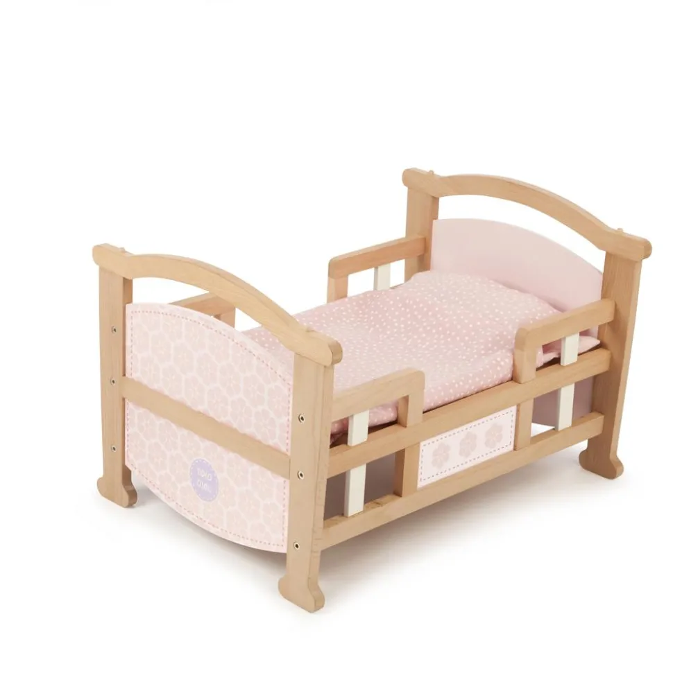 The 2 in 1 Cradle has a sturdy wooden design with pretty flower graphics. 2 in 1 design changes from a rocking cradle to a single bed and if you have two, then you can make bunk beds. Comes complete with three pieces of bedding 3 years +