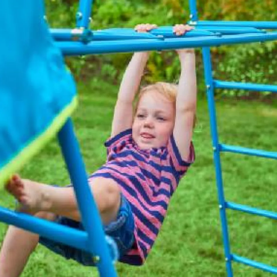 The Jungle Run adds climbing challenge to the Explorer Frame. Can be built at low and full height. All that is required is supplied with the original purchase. Is available in Blue or Black and either will fit the Explorer Frames.